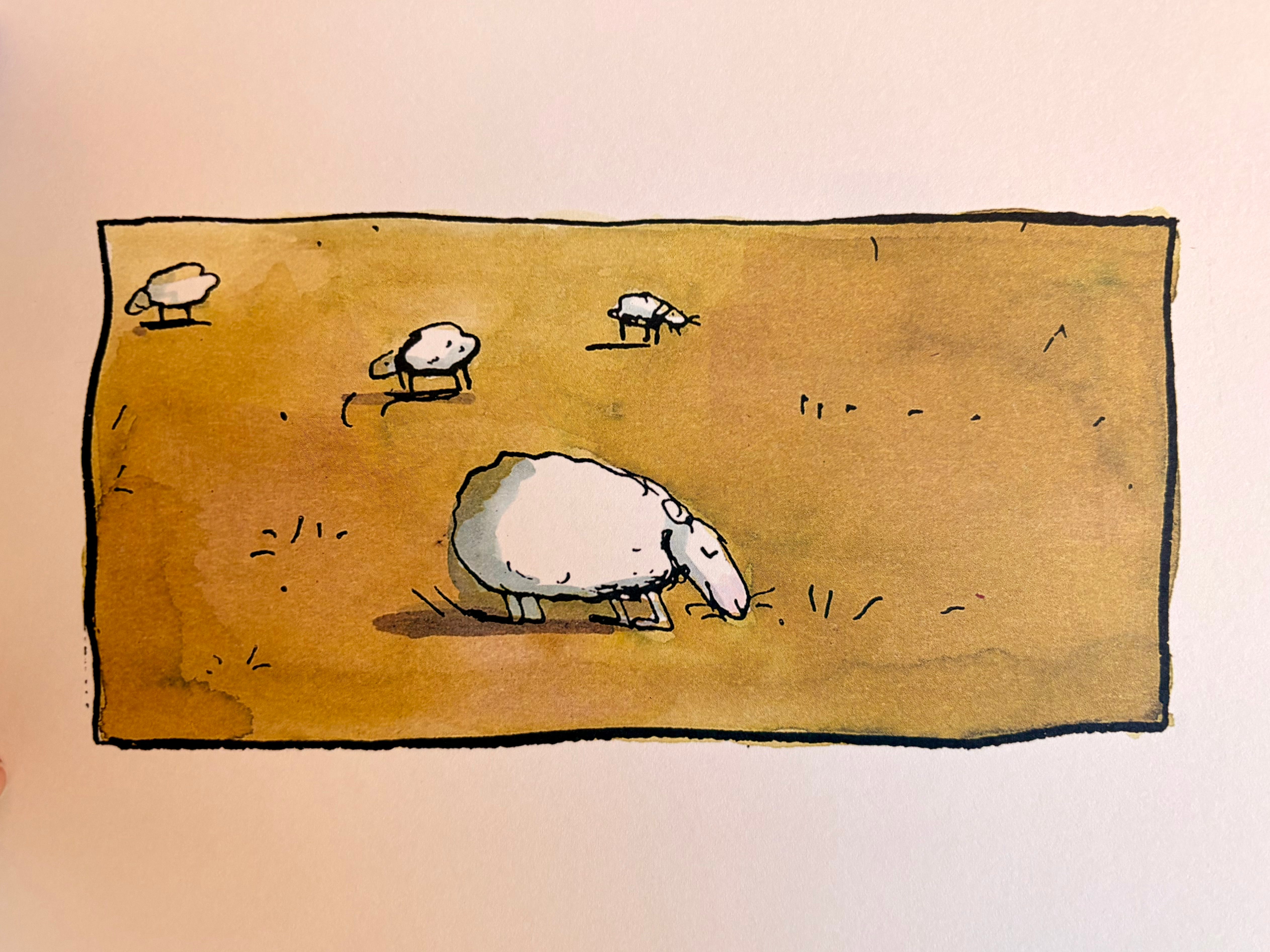 La protagonista è una tenerissima – e sorprendentemente saggia – pecora a cui viene chiesto cosa la renderebbe felice. Viene da pensare a grandi cose o desideri irraggiungibili, soprattutto quando le chiedono “E se vincesse al lotto?”. Be’, la risposta della pecora Selma è una lista semplice e molto quotidiana: brucare un po’ d’erba, fare un po’ di sport, fare due chiacchiere con un’amica, dormire bene… e così, ancora e ancora.